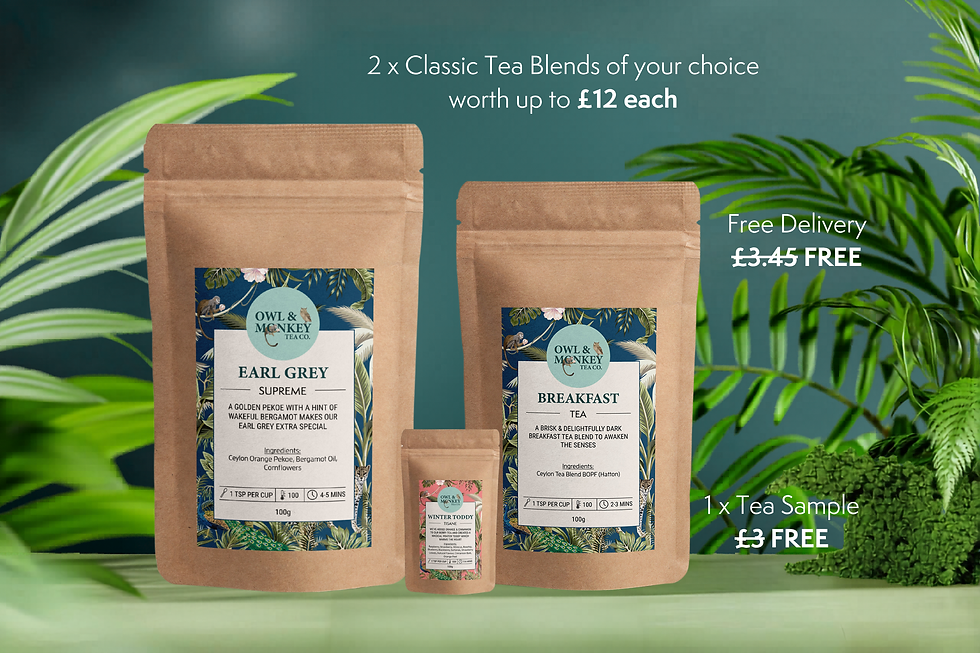 Perfect for the everyday tea drinker. The Classic Tea Club lets you choose two of your favourite Owl & Monkey teas, delivered every two months. Whether it’s your daily English Breakfast or a calming green tea, this is the easiest way to keep your cupboard stocked.